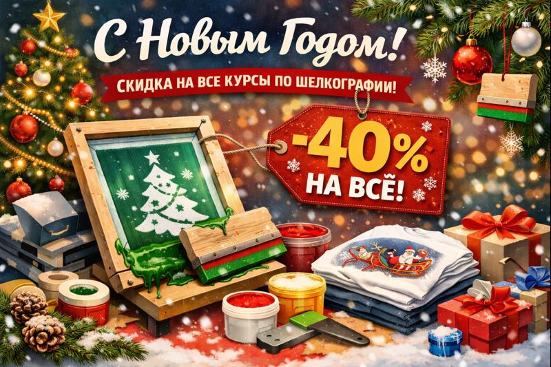 Скидка 40% на все обучающие курсы онлайн-школы шелкографии.
